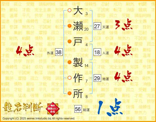 大(3画)瀬(20画)戸(4画) 製(14画)作(7画)所(8画)