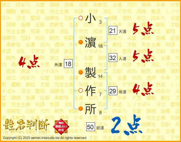 小濵製作所さんの人運は32画の5点!