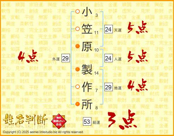 小笠原製作所さんの人運は24画の5点!