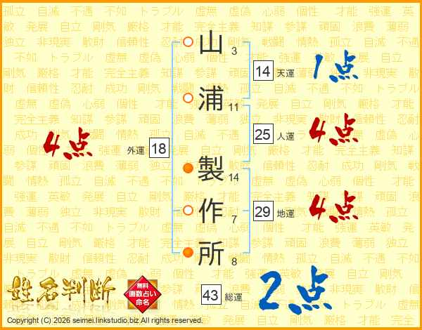 山(3画)浦(11画) 製(14画)作(7画)所(8画)