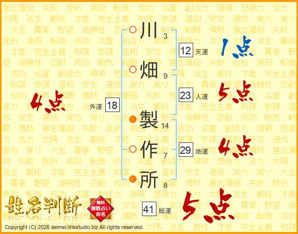 川畑製作所さんの人運は23画の5点!