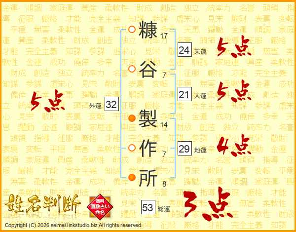 糠谷製作所さんの天運は24画の5点!