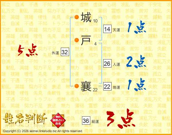 城戸襄さんの総運は36画の3点!