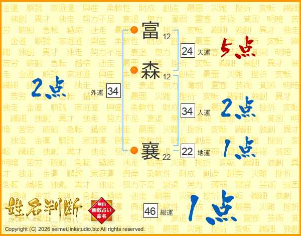 富(12画)森(12画) 襄(22画)