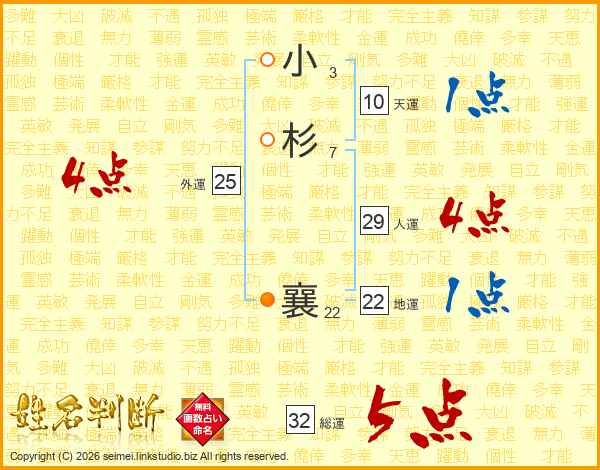 小杉襄さんの総運は32画の5点!