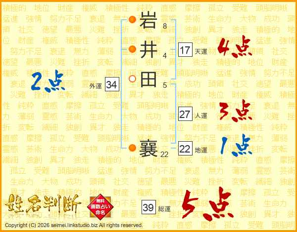 岩井田襄さんの総運は39画の5点!