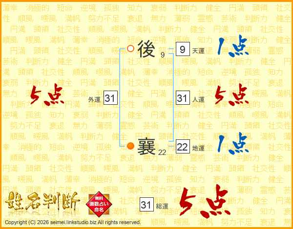 後襄さんの総運は31画の5点!