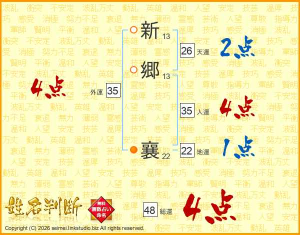 新郷襄さんの総運は48画の4点!