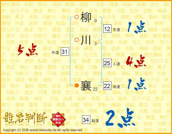 柳川襄さんの総運は34画の2点!