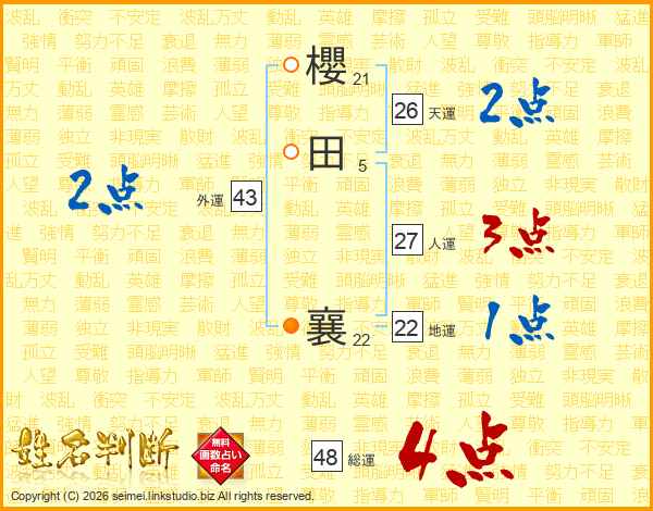櫻田襄さんの総運は48画の4点!
