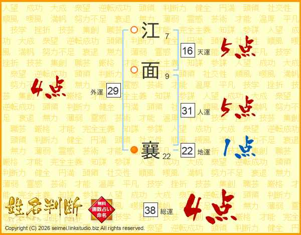 江面襄さんの総運は38画の4点!