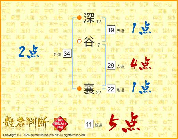 深谷襄さんの総運は41画の5点!
