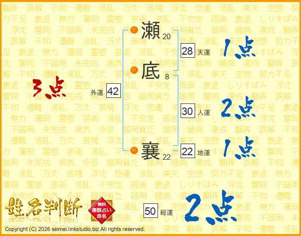 瀬底襄さんの総運は50画の2点!