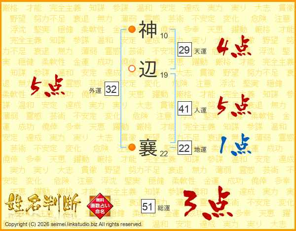 神辺襄さんの総運は51画の3点!