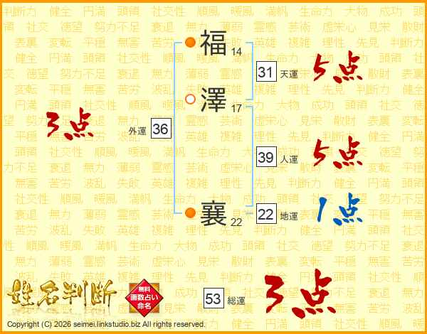 福澤襄さんの総運は53画の3点!