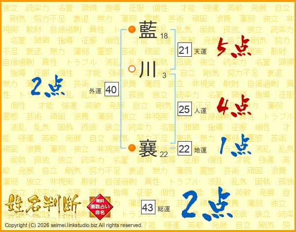 藍川襄さんの総運は43画の2点!