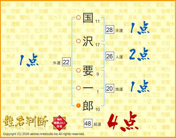 国沢要一郎さんの人運は26画の2点!