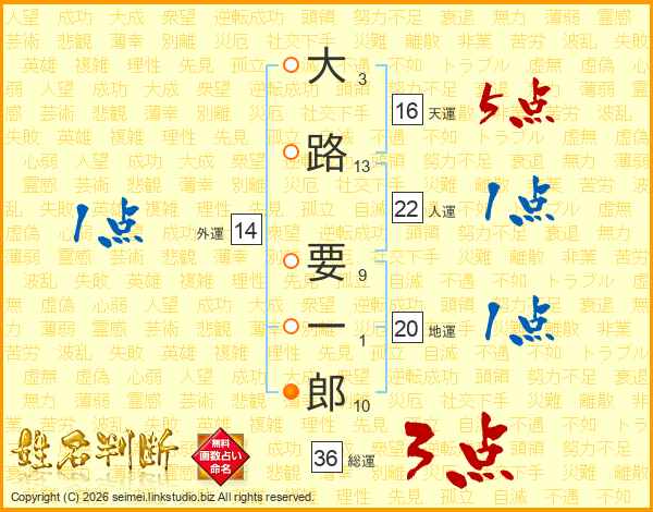 大路要一郎さんの地運は20画の1点!