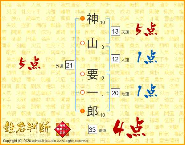 神山要一郎さんの総運は33画の4点!