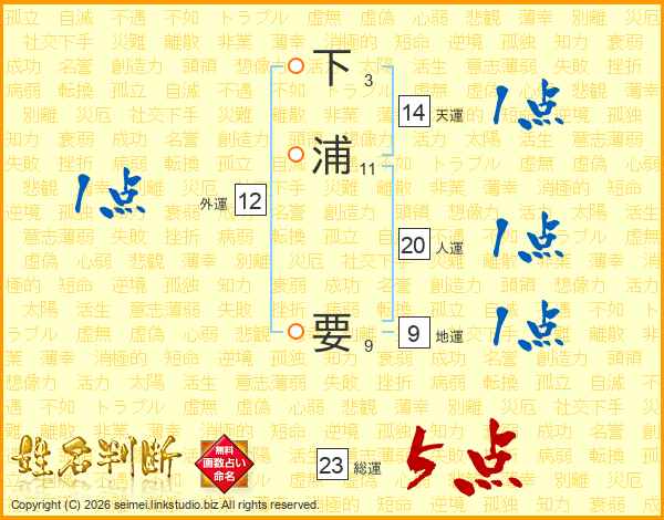 下浦要さんの人運は20画の1点!