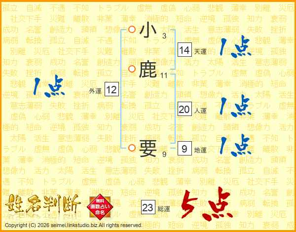 小鹿要さんの総運は23画の5点!