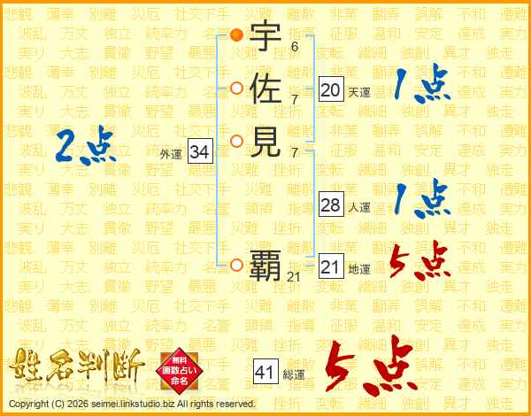 宇佐見覇さんの総運は41画の5点!