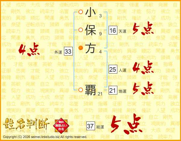 小保方覇さんの人運は25画の4点!