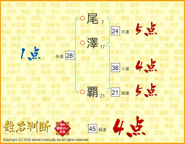 尾澤覇さんの総運は45画の4点!