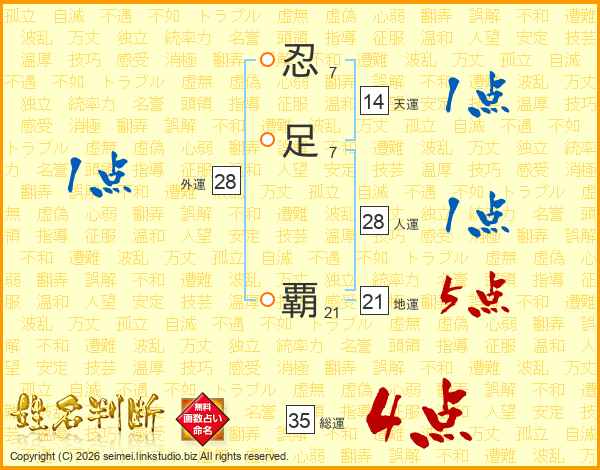 忍足覇さんの総運は35画の4点!