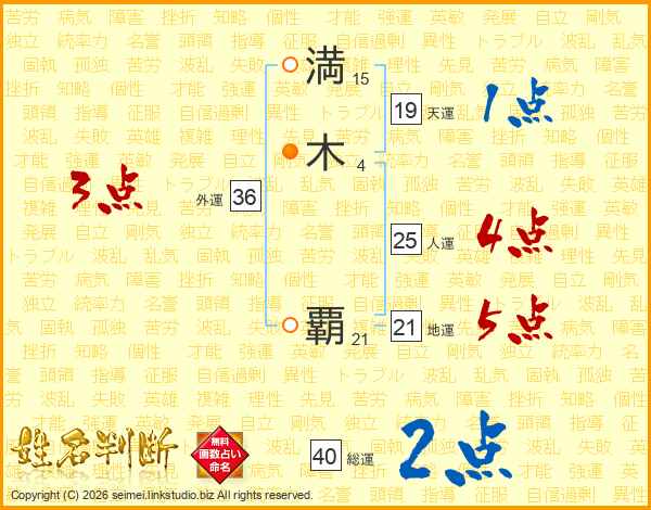 満木覇さんの地運は21画の5点!