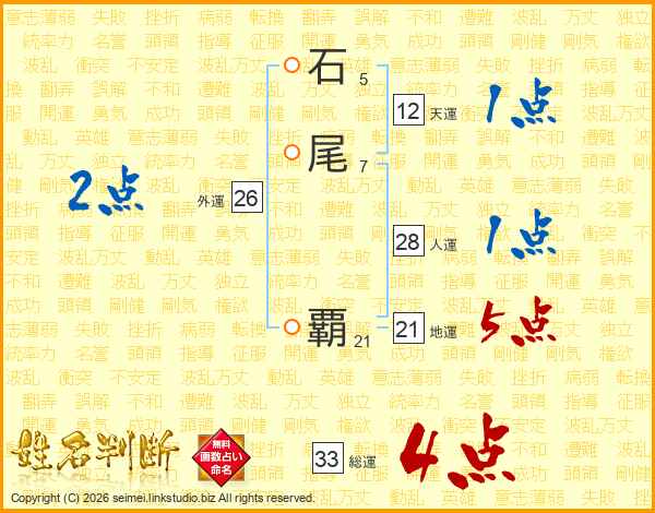 石尾覇さんの総運は33画の4点!
