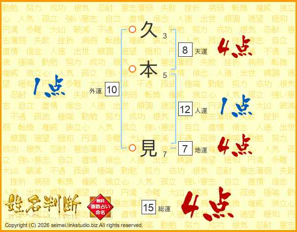 久本見さんの総運は15画の4点!