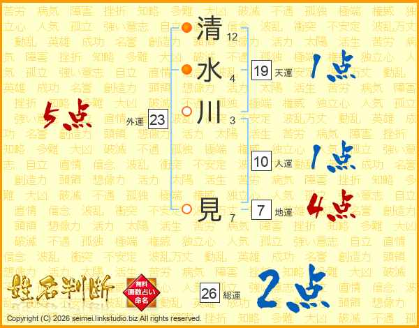 清水川見さんの総運は26画の2点!