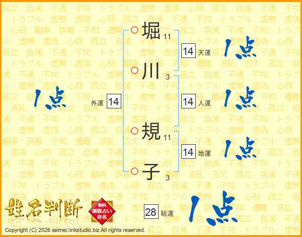 堀川規子さんの天運は14画の1点!