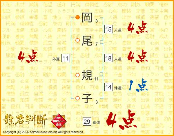 岡尾規子さんの総運は29画の4点!