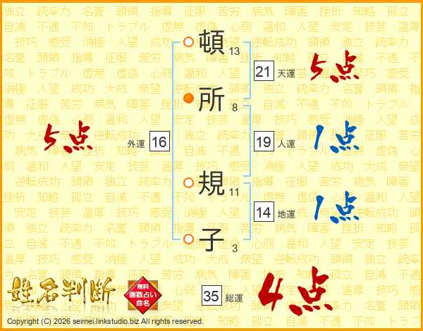 頓所規子さんの天運は21画の5点!