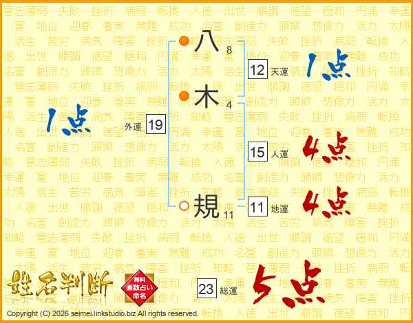 八木規さんの総運は23画の5点!