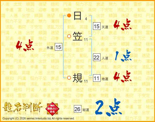 日笠規さんの総運は26画の2点!
