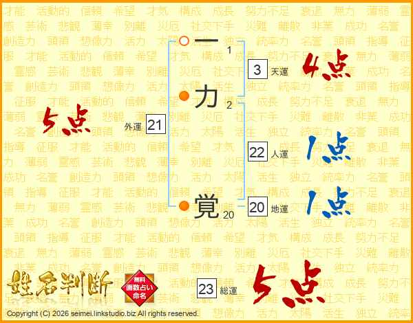 一力覚さんの総運は23画の5点!