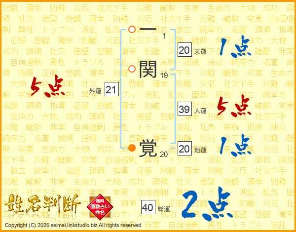 一関覚さんの人運は39画の5点!