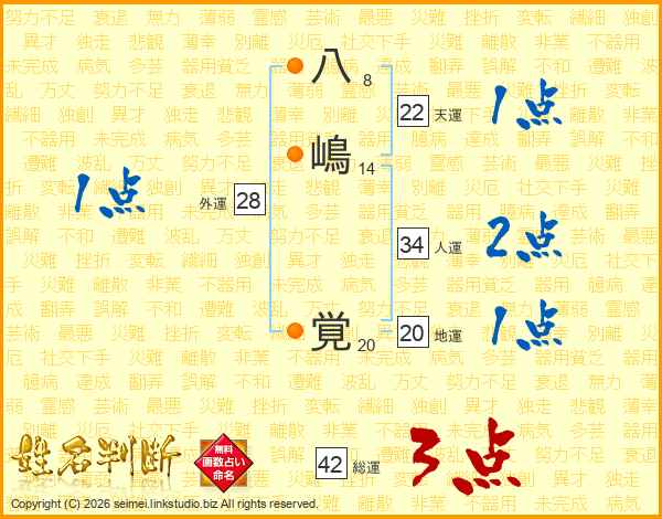 八嶋覚さんの総運は42画の3点!