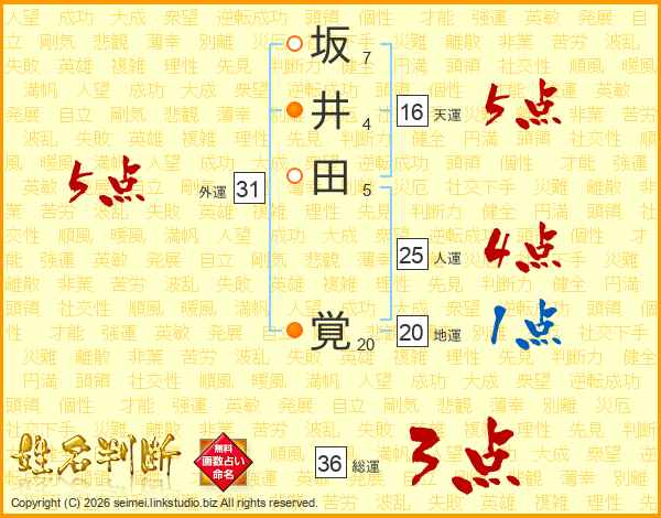 坂井田覚さんの人運は25画の4点!