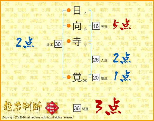 日向寺覚さんの総運は36画の3点!