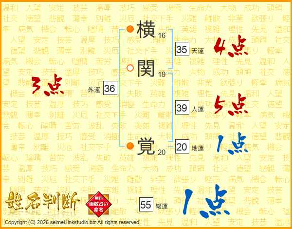 横関覚さんの人運は39画の5点!