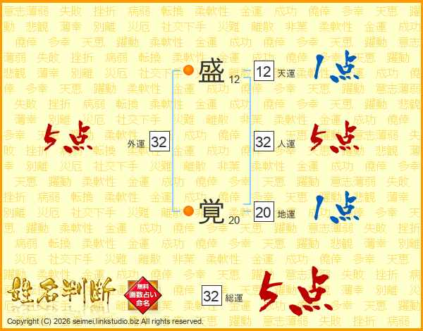 盛覚さんの総運は32画の5点!