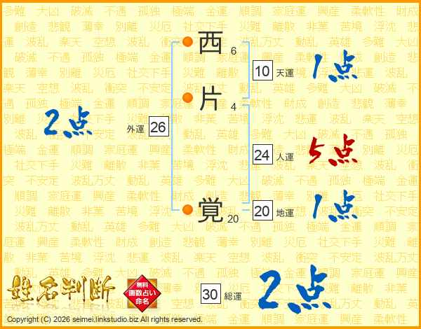 西片覚さんの人運は24画の5点!
