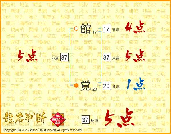 館覚さんの人運は37画の5点!