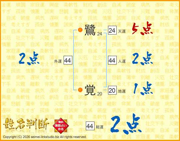 鷺覚さんの総運は44画の2点!
