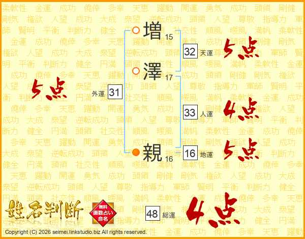 増(15画)澤(17画) 親(16画)