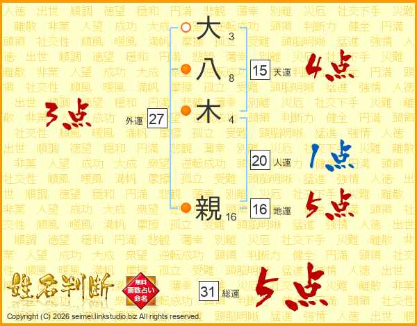 大八木親さんの天運は15画の4点!